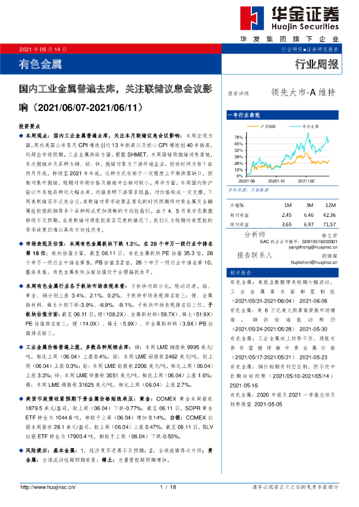 华金证券:有色金属行业周报:国内工业金属普遍去库,关注联储议息会议影响.pdf