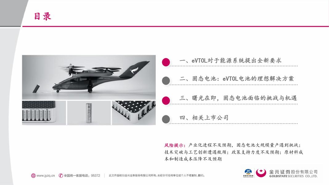 金元证券:eVTOL电池篇:固态电池曙光在即,eVTOL有望迎来全新升级.pdf