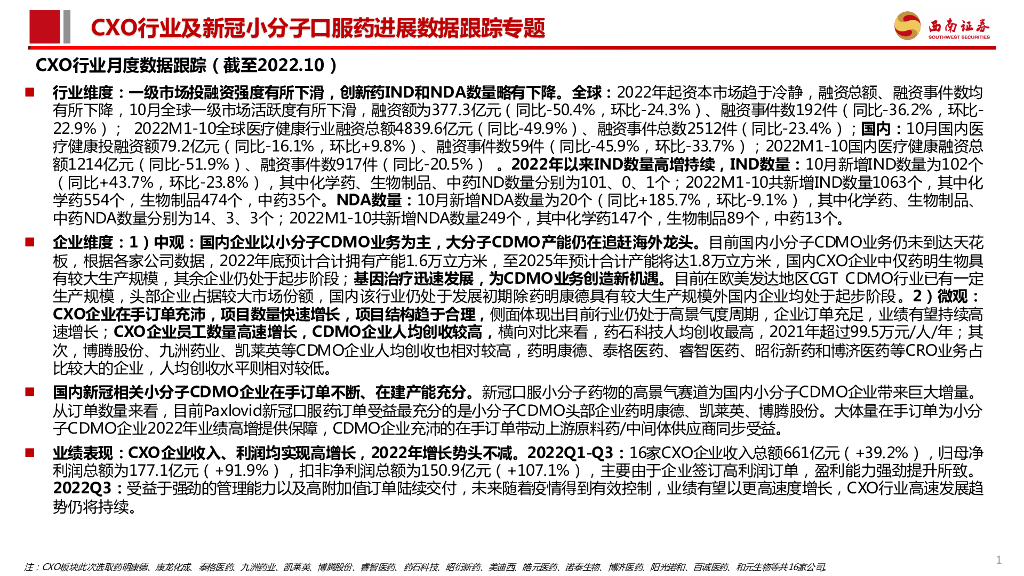 西南证券:CXO行业及新冠小分子口服药进展数据跟踪.pdf
