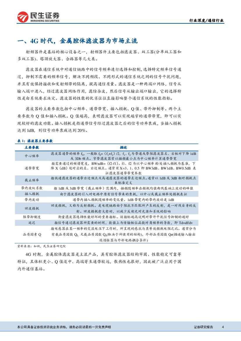 民生证券:5G滤波器行业报告:把握行业变革,迎滤波器全新机遇.pdf