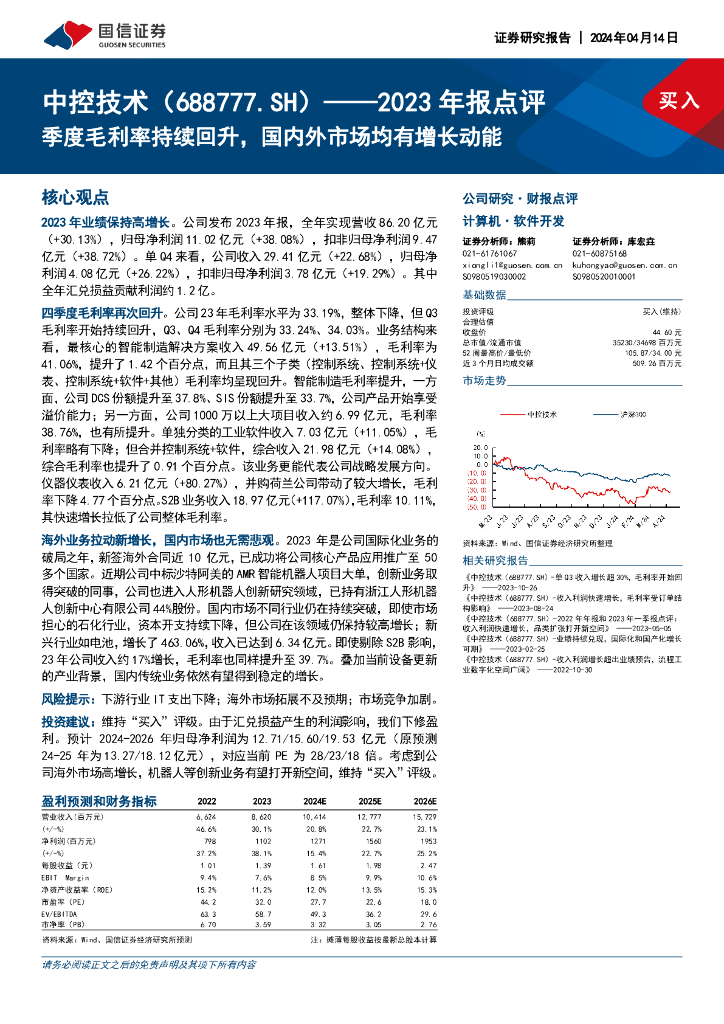 国信证券:中控技术(688777)-2023年报点评:季度毛利率持续回升,国内外市场均有增长动能.pdf