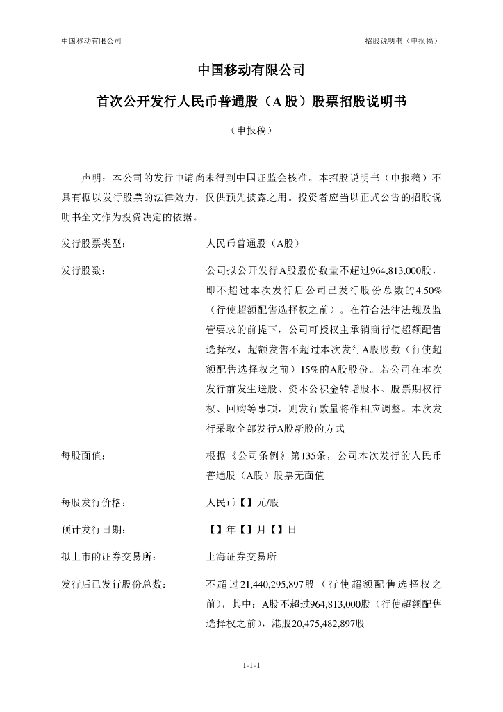 中国移动有限公司上交所主板IPO上市招股说明书.pdf