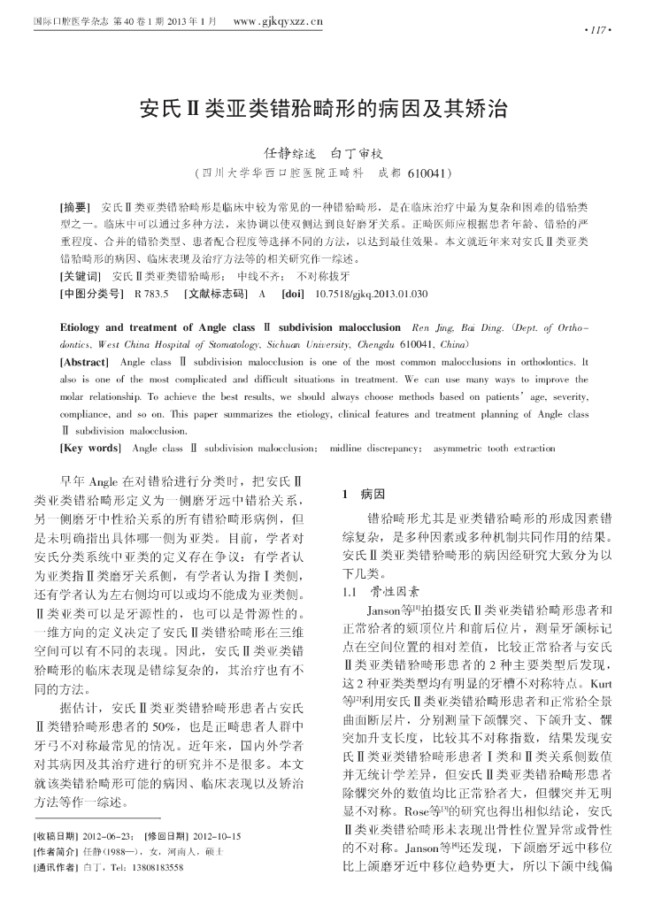 安氏Ⅱ类亚类错合畸形的病因及其矫治.pdf