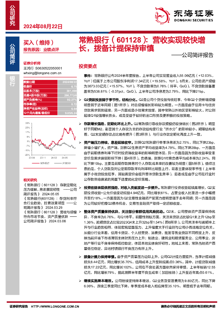 东海证券:常熟银行(601128)-公司简评报告:营收实现较快增长,拨备计提保持审慎.pdf