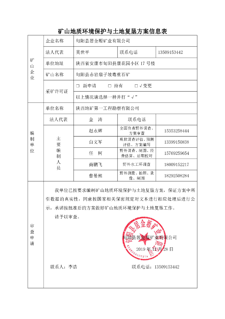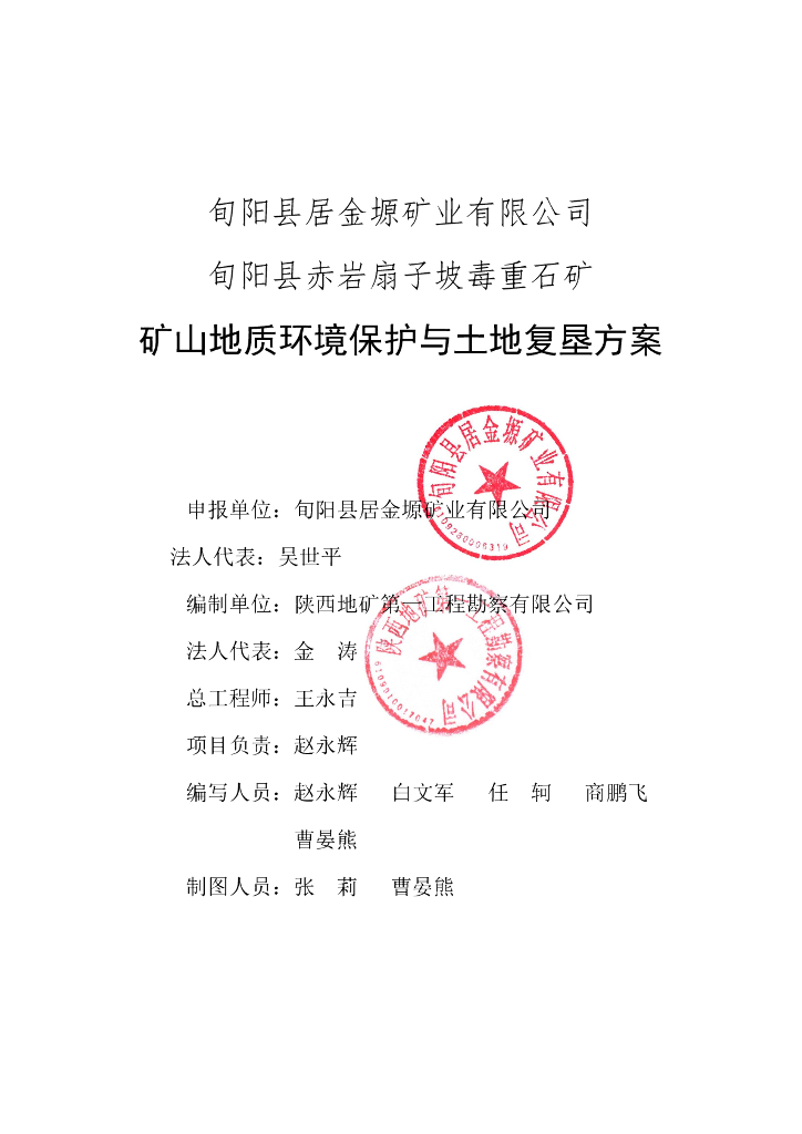 旬阳县居金塬矿业有限公司 旬阳县赤岩扇子坡毒重石矿-矿山地质环境保护与土地复垦方案(审定稿).pdf