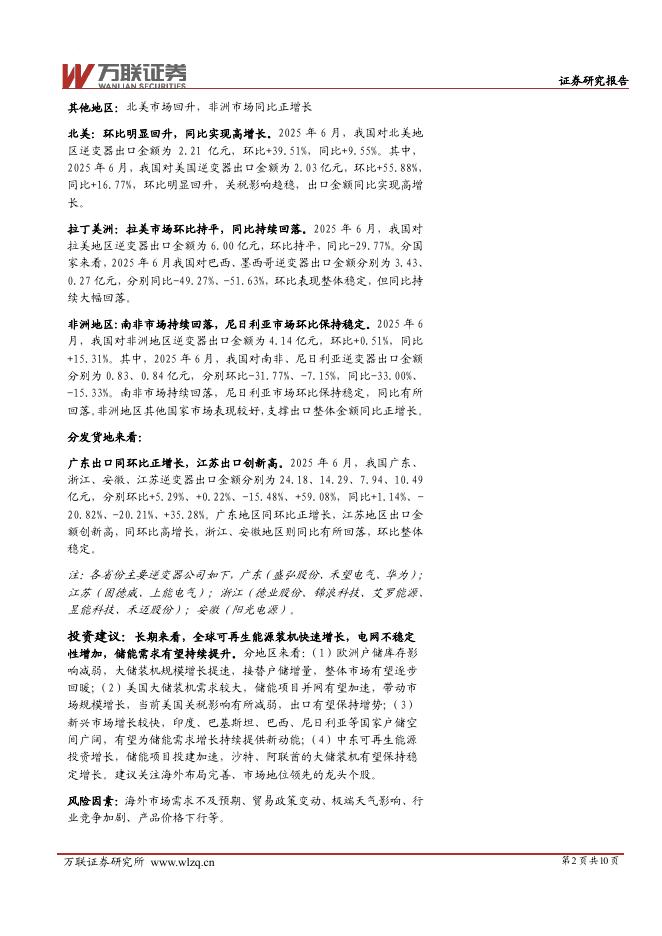 万联证券:电力设备行业跟踪报告:逆变器出口:亚洲地区增势稳定,北美市场回升.pdf