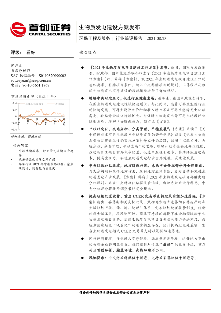 首创证券:环保工程及服务行业简评报告:生物质发电建设方案发布.pdf