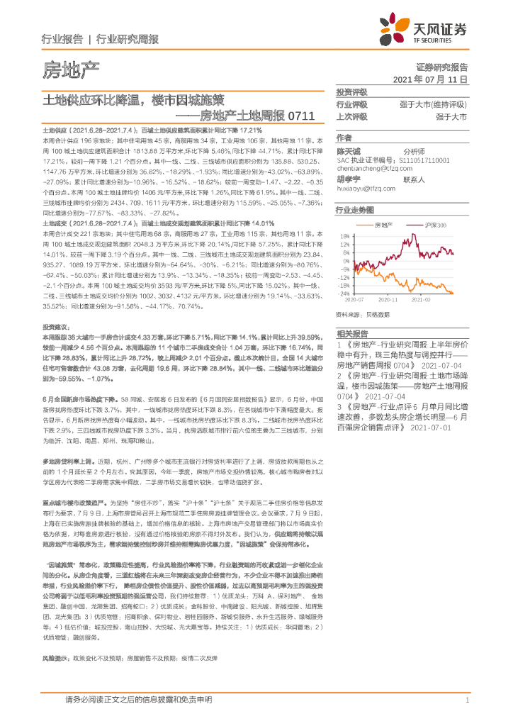 天风证券:房地产土地周报:土地供应环比降温,楼市因城施策.pdf
