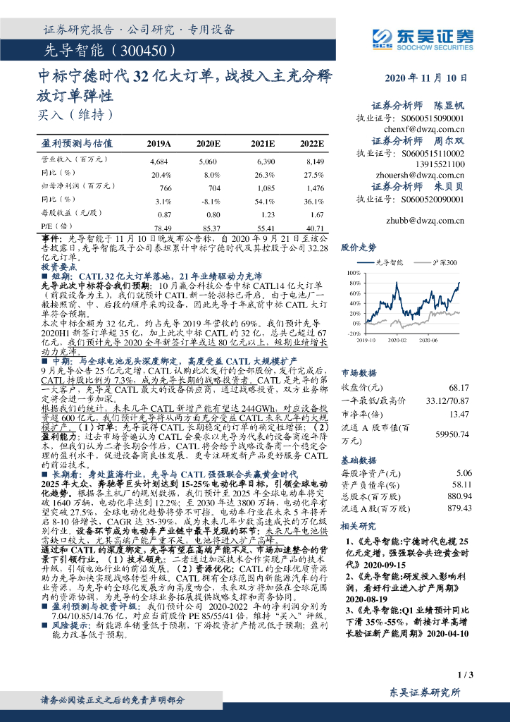 东吴证券:先导智能(300450)-中标宁德时代32亿大订单,战投入主充分释放订单弹性.pdf