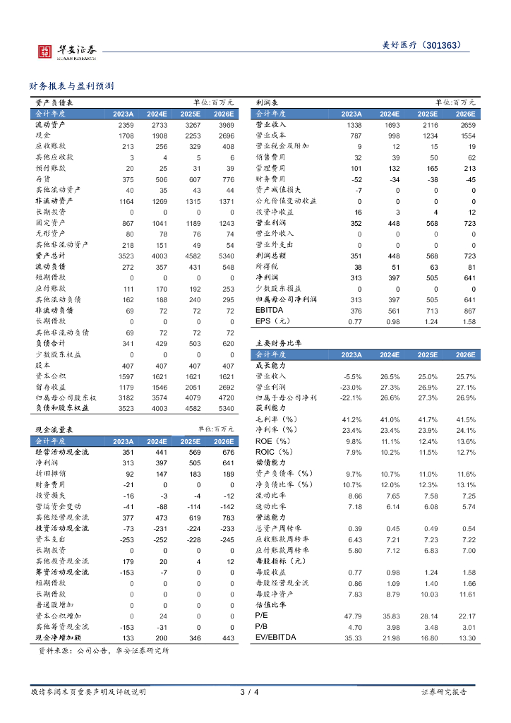 华安证券:美好医疗(301363)-三季度业绩增速显著,新赛道业务步入收获期.pdf