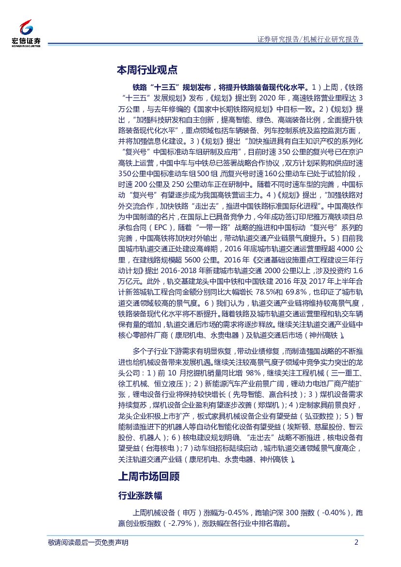 宏信证券:机械行业周报:铁路“十三五”规划发布,将提升铁路装备现代化水平.pdf