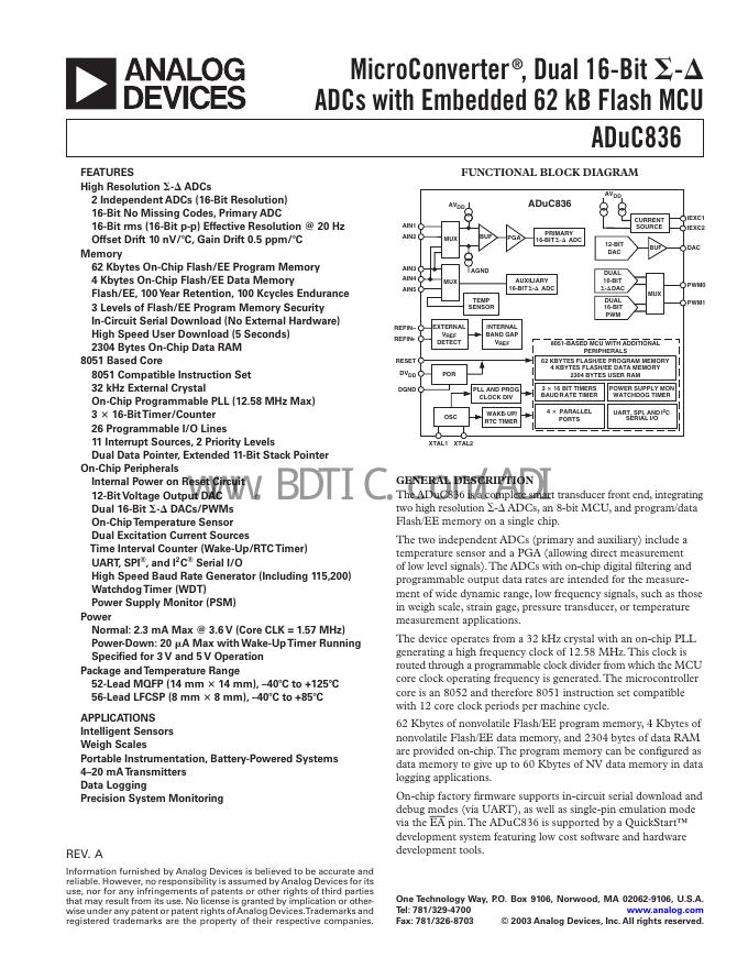 ANALOG DEVICES ADuC836 数据手册.pdf