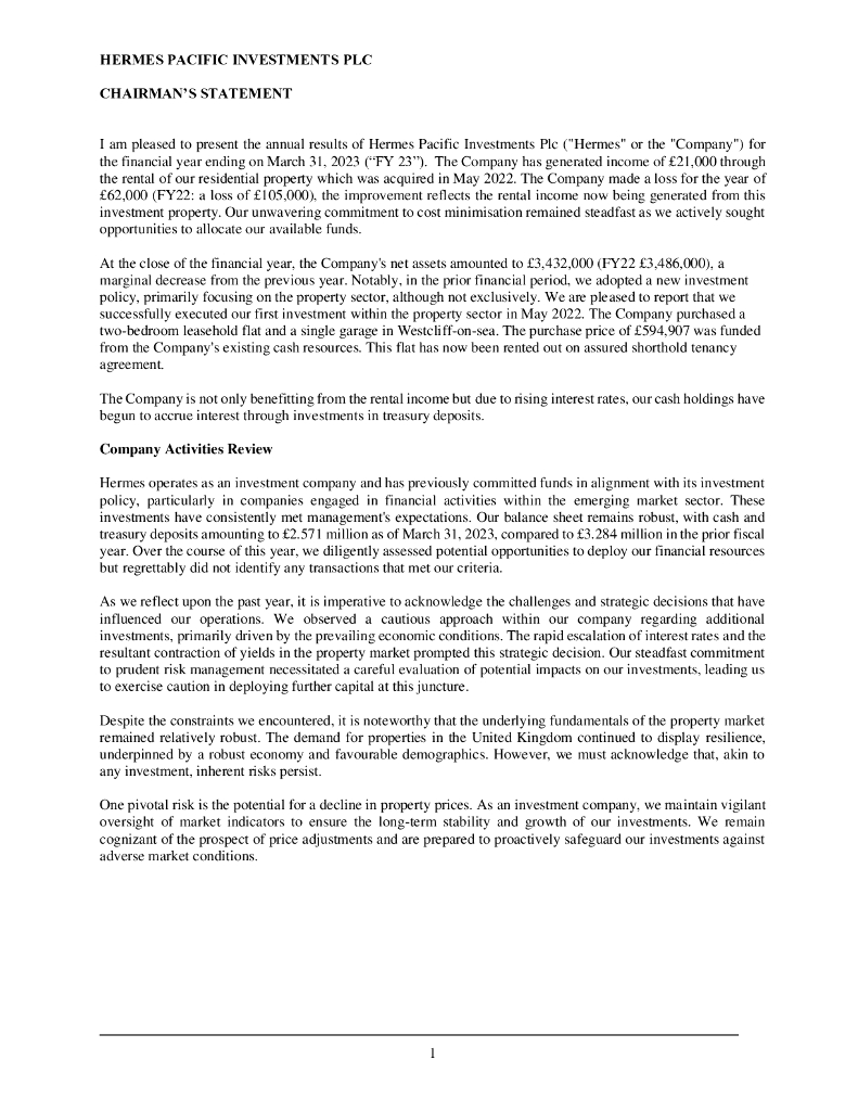 Hermes Pacific Investments plc(HPAC)2023财年年度报告(英文版).pdf