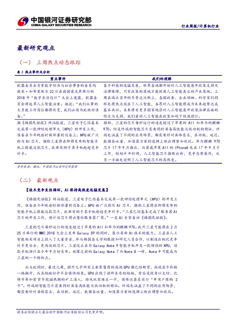 中国银河:计算机行业周报:三星基本完成AI芯片,人工智能保持高热度.pdf
