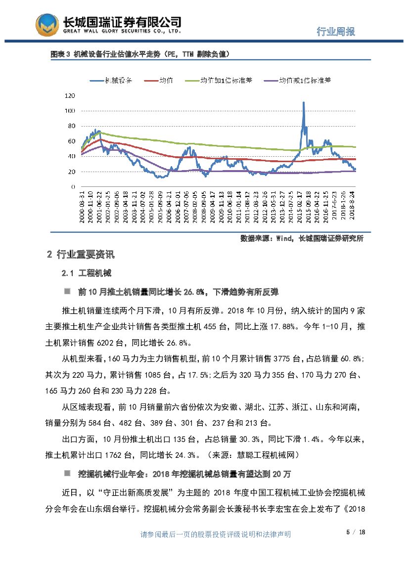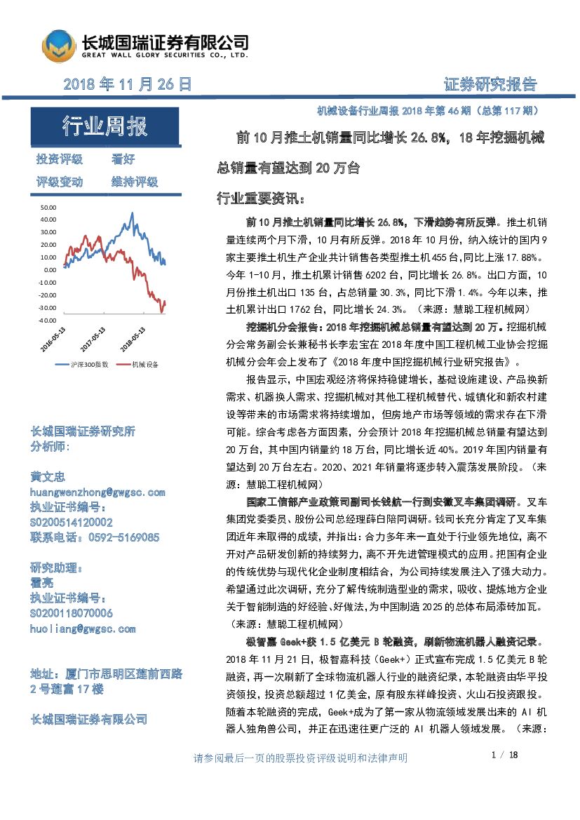 长城国瑞证券:机械设备行业周报2018年第46期(总第117期):前10月推土机销量同比增长26.8%,18年挖掘机械总销量有望达到20万台.pdf