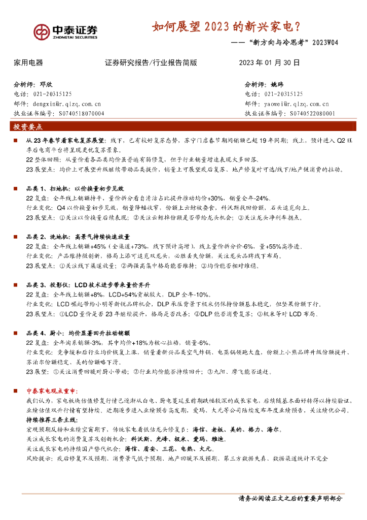 中泰证券:家用电器“新方向与冷思考”2023W04:如何展望2023的新兴家电?.pdf