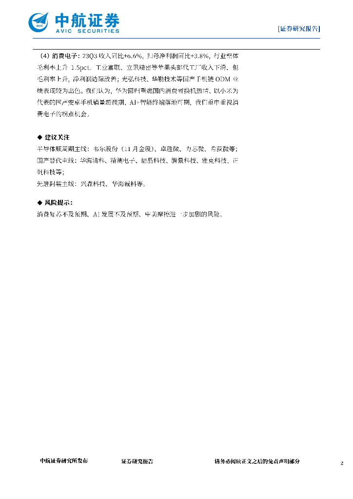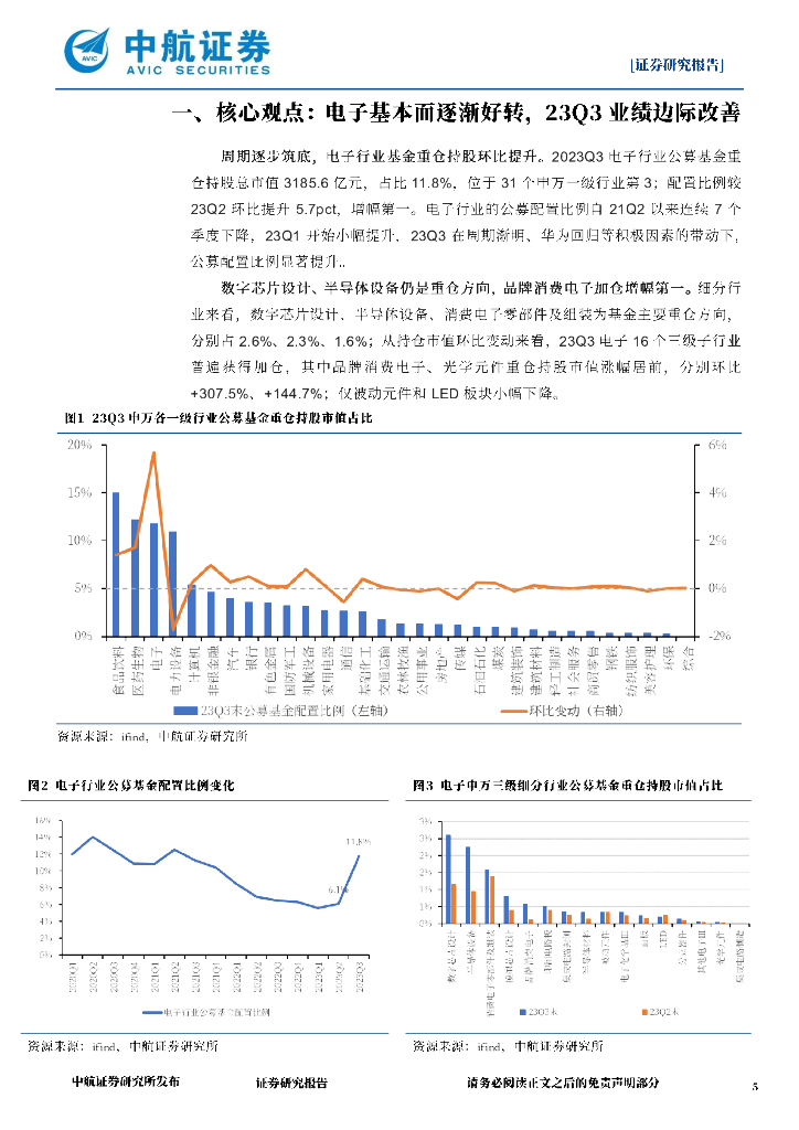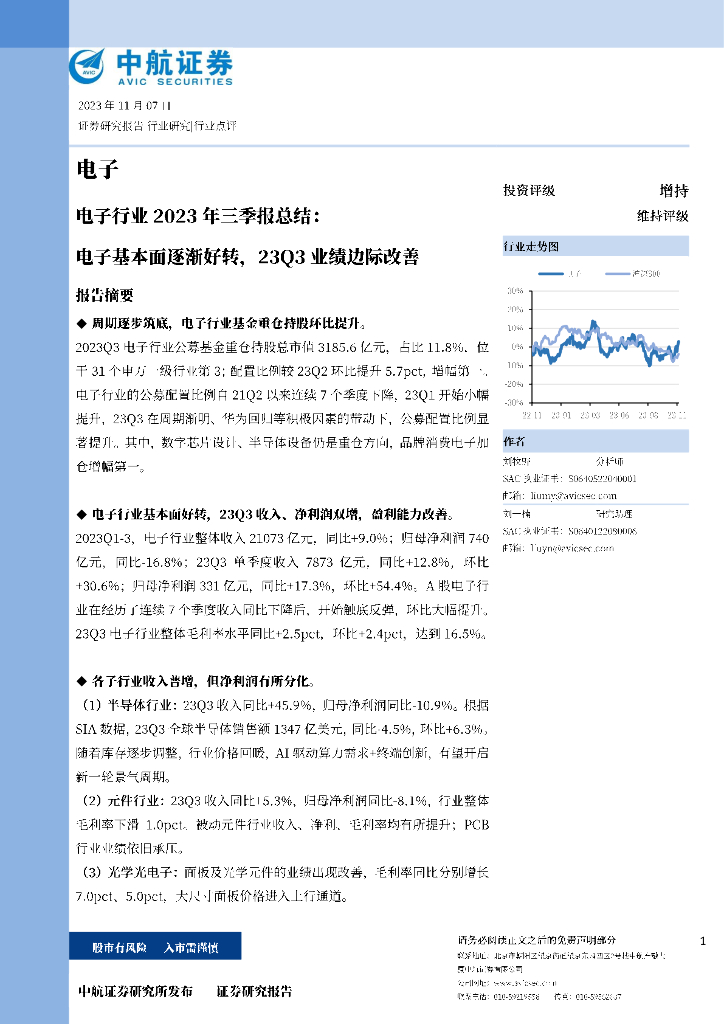 中航证券:电子行业2023年三季报总结:电子基本面逐渐好转,23Q3业绩边际改善.pdf