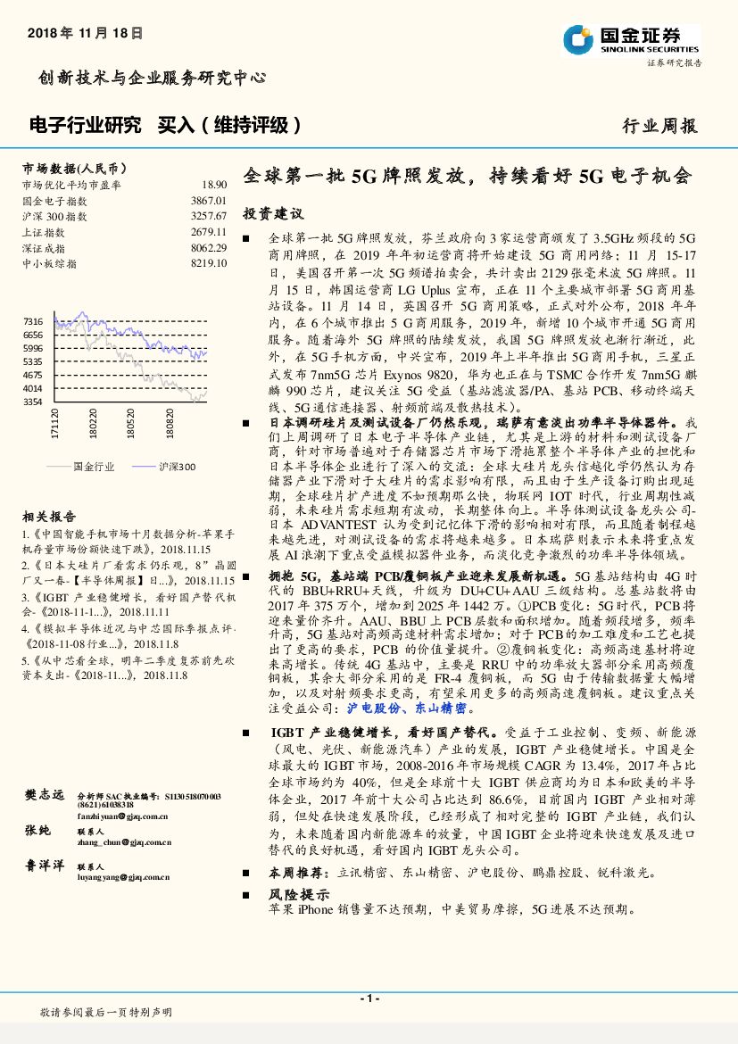 国金证券:电子行业研究:全球第一批5G牌照发放,持续看好5G电子机会.pdf