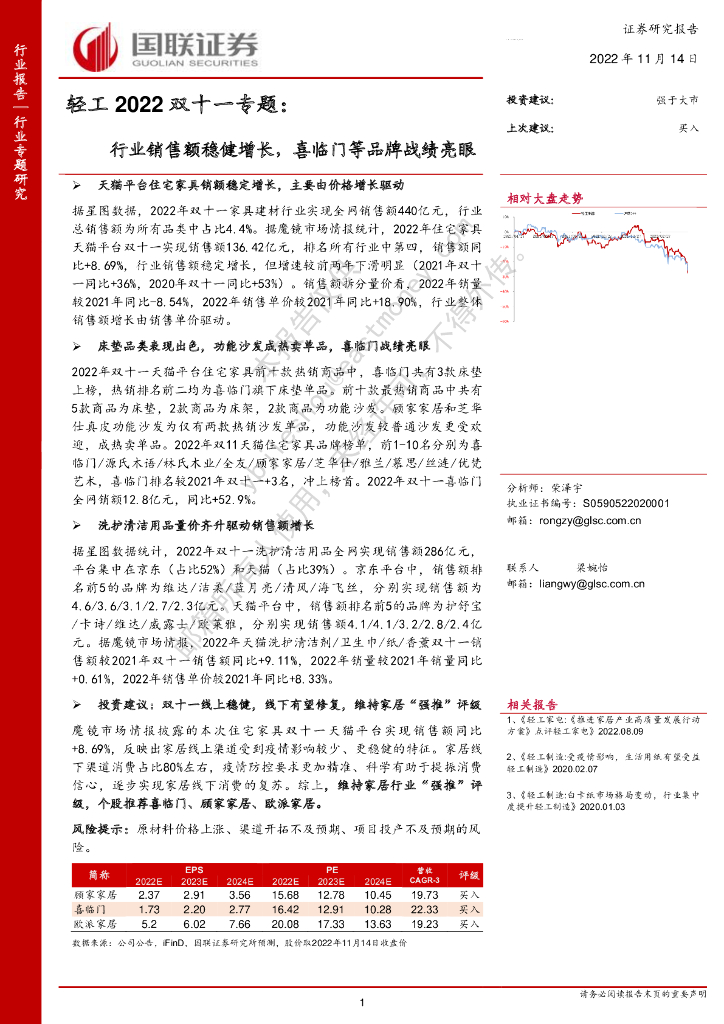 国联证券:轻工2022双十一专题:行业销售额稳健增长,喜临门等品牌战绩亮眼.pdf