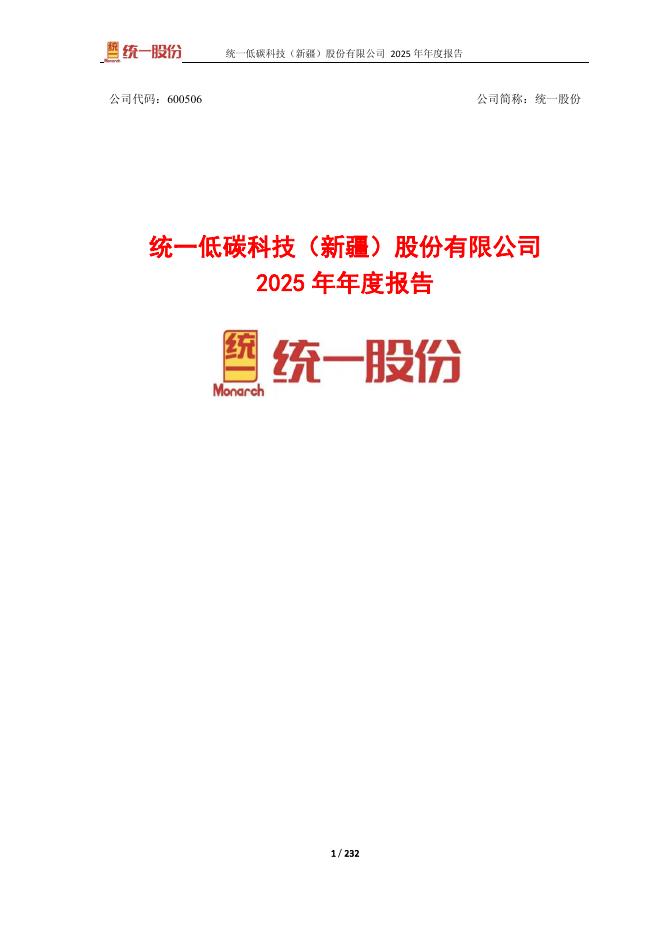 600506-统一股份:统一低碳科技(新疆)股份有限公司2025年年度报告.pdf