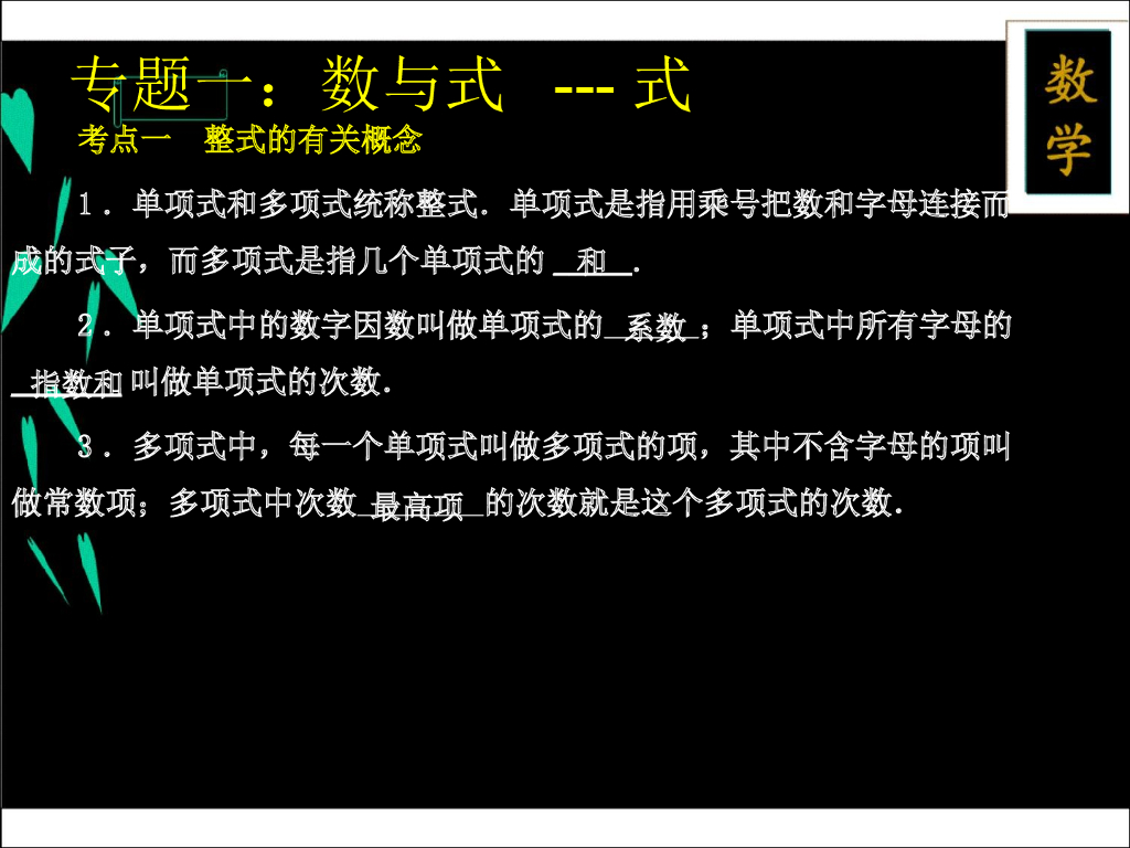 新北师大中考数学二轮复习专题一-数与式---式ppt课件.ppt