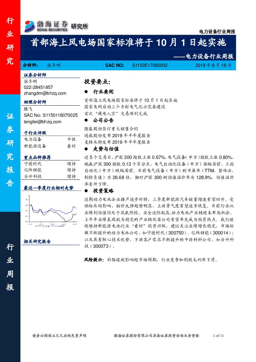 渤海证券:电力设备行业周报:首部海上风电场国家标准将于10月1日起实施.pdf