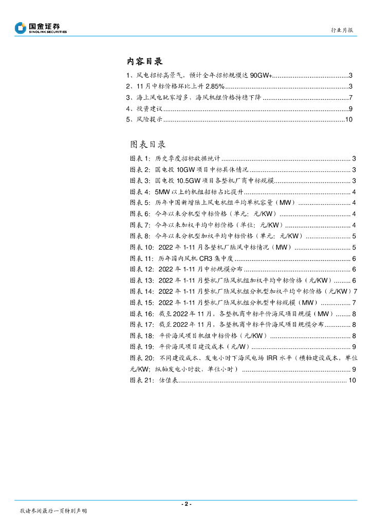 国金证券:新能源发电设备行业研究:11月陆风机组中标价格环比提升3%,行业招标高景气.pdf