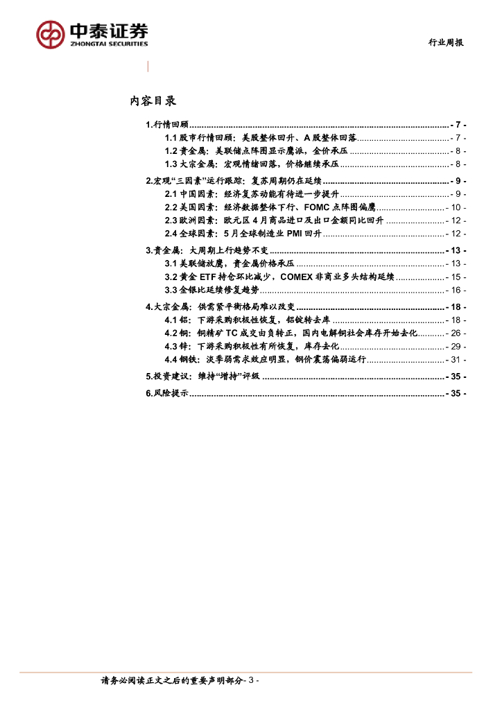 中泰证券:有色金属行业周报:FOMC偏鹰不改金价上行逻辑,大宗采购积极性恢复对价格形成支撑.pdf