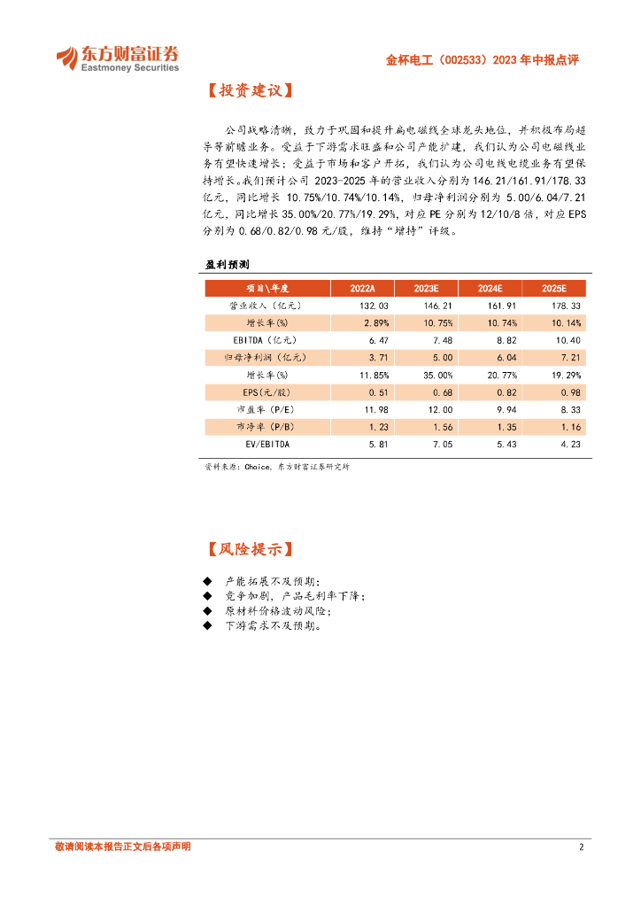 东方财富证券:金杯电工(002533)-2023年中报点评:盈利增长超预期,前瞻布局与管理提升驱动长期增长.pdf