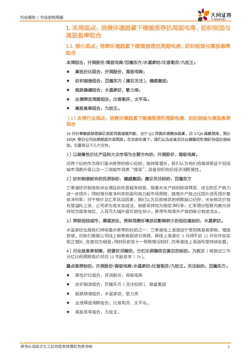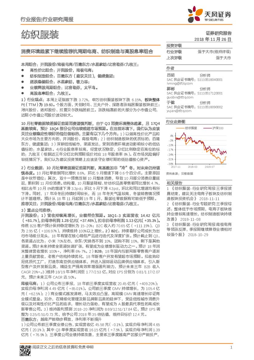 天风证券:纺织服装行业研究周报:消费环境趋紧下继续推荐抗周期电商、纺织制造与高股息率组合.pdf
