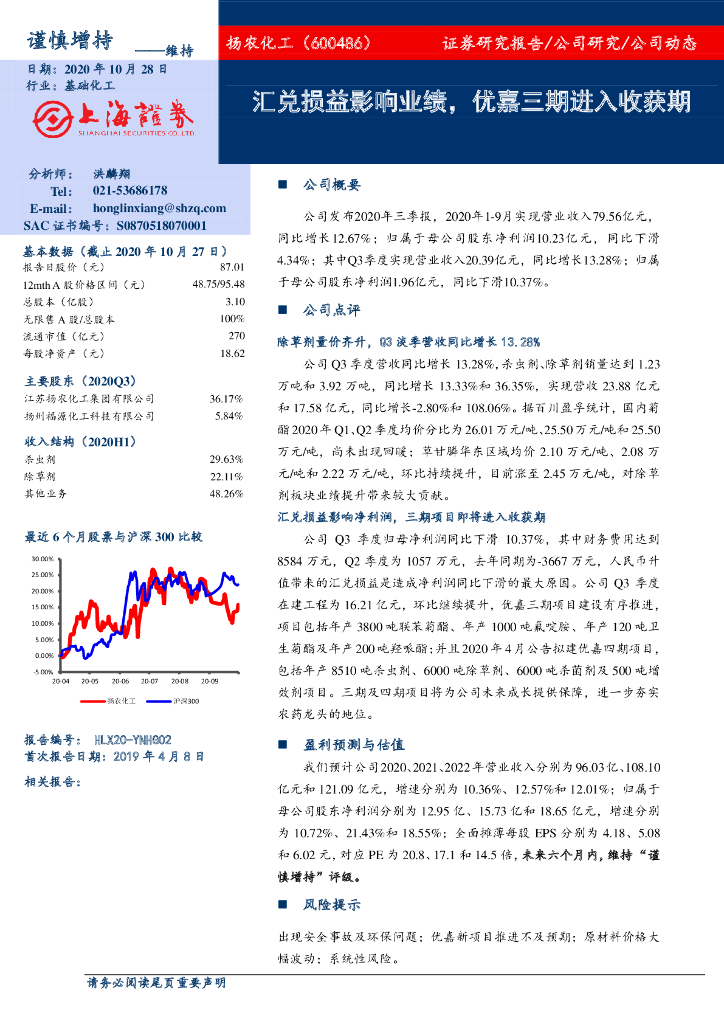 上海证券:扬农化工(600486)-汇兑损益影响业绩,优嘉三期进入收获期.pdf