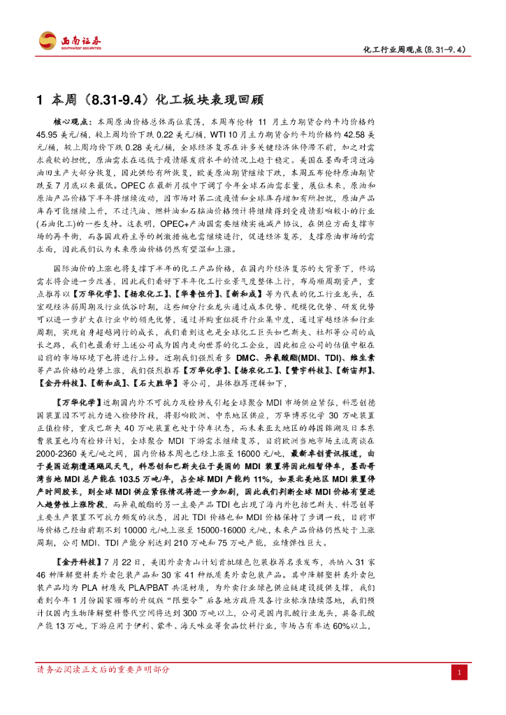 西南证券:化工行业周观点:DMC价格大幅上涨,继续看多MDI、TDI.pdf