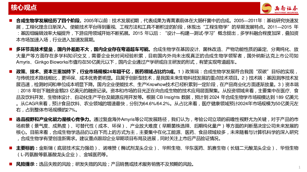 西南证券:合成生物学——建物致知,大有可为.pdf
