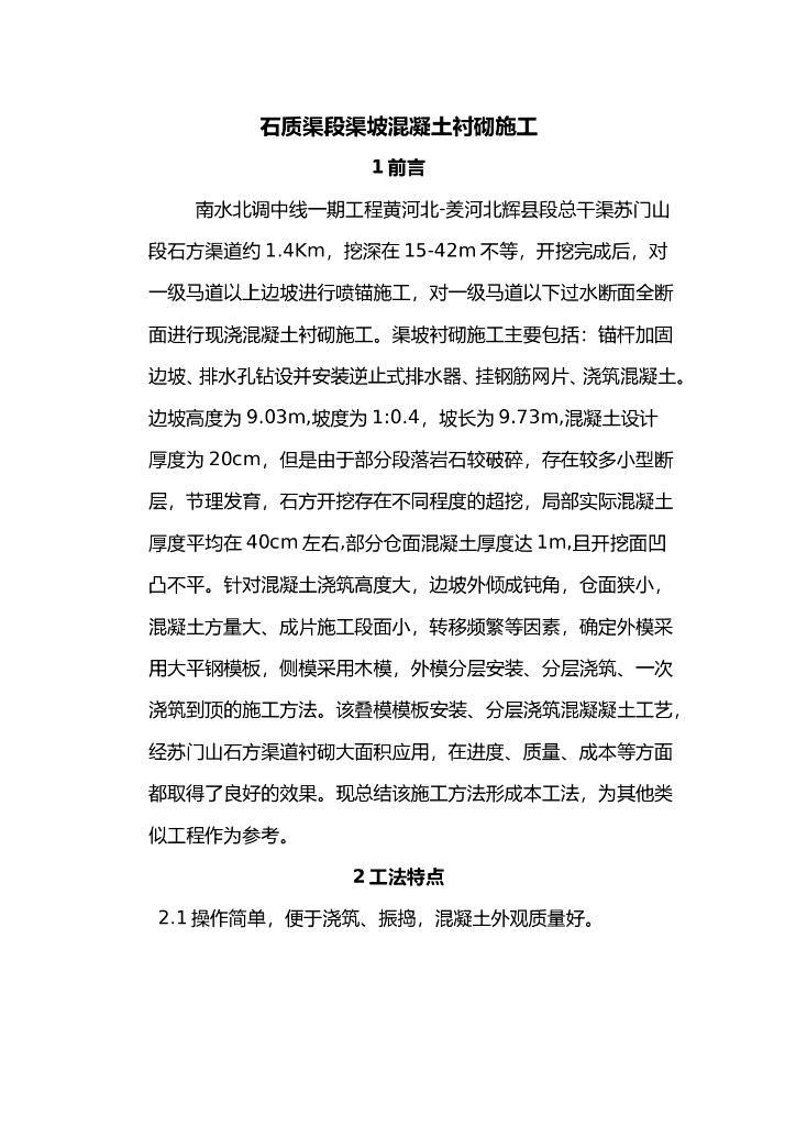 石质渠段渠坡混凝土衬砌施工方案.doc