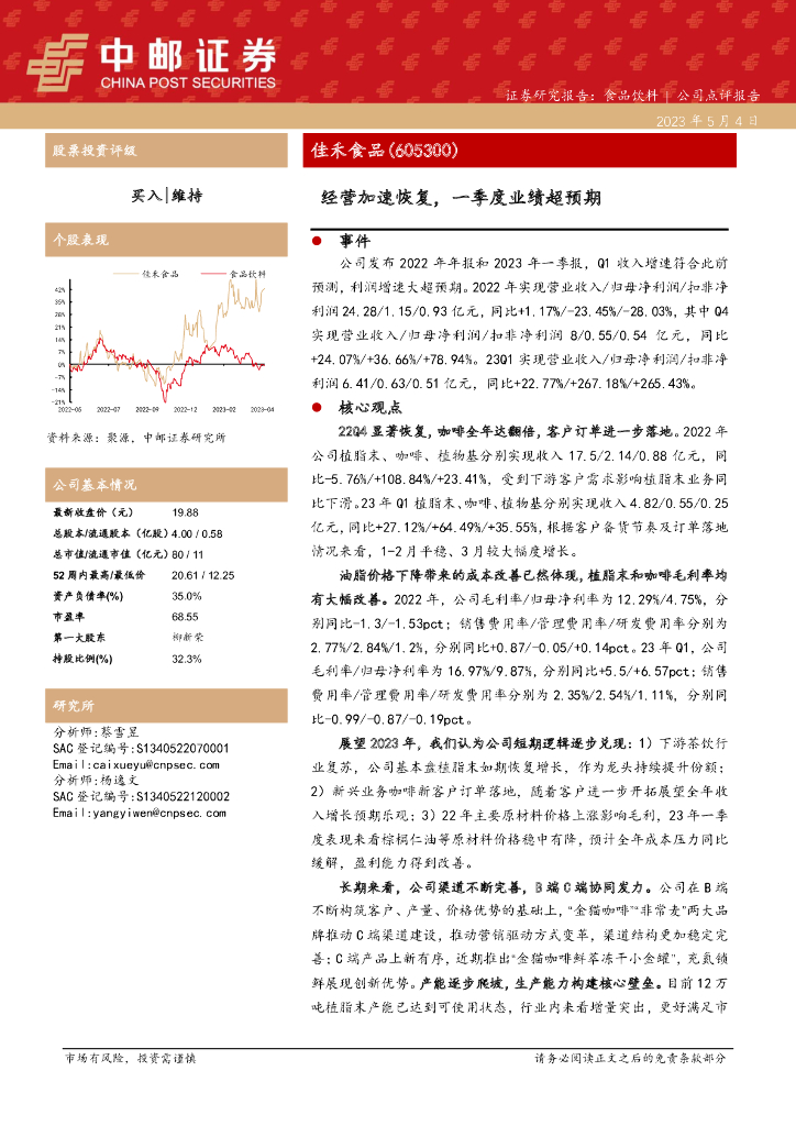 中邮证券:佳禾食品(605300)-经营加速恢复,一季度业绩超预期.pdf