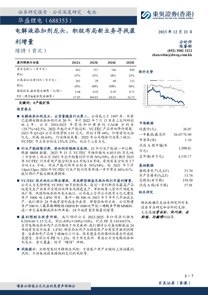 东吴证券国际经纪:华盛锂电(688353)-电解液添加剂龙头,积极布局新业务寻找盈利增量.pdf