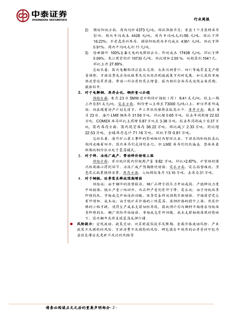 中泰证券:有色金属行业周报:降息周期有望开启,板块上升动能将进一步提振.pdf
