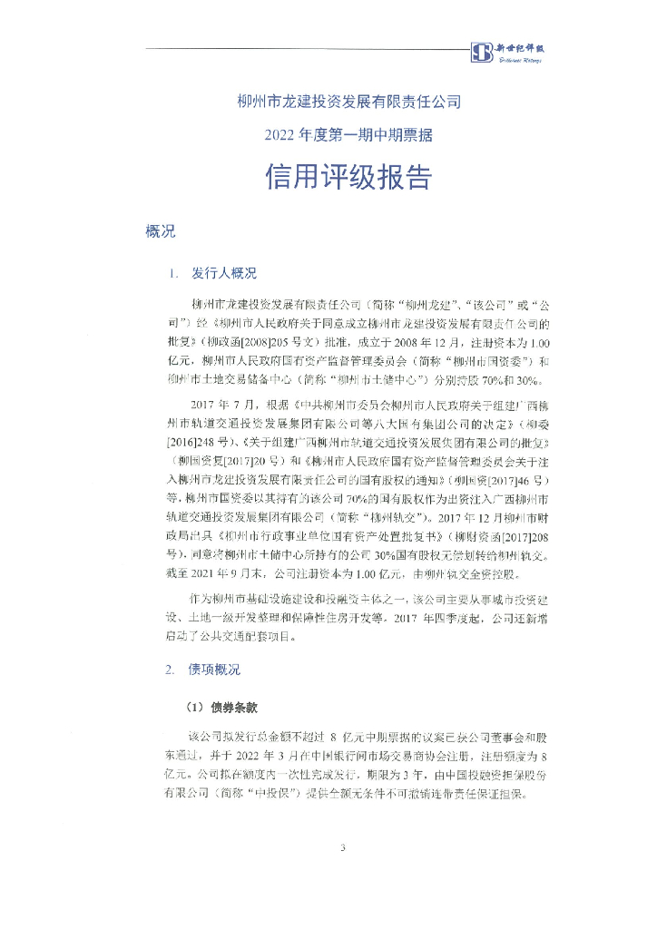 新世纪:柳州市龙建投资发展有限责任公司2022年度第一期中期票据信用评级报告.pdf