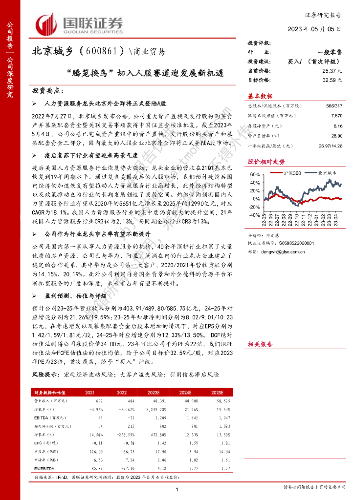 国联证券:北京城乡(600861)-“腾笼换鸟”切入人服赛道迎发展新机遇.pdf