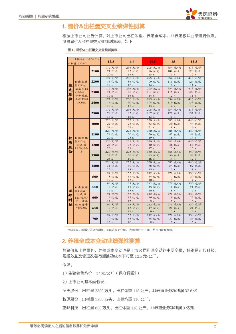 天风证券:生猪养殖系列报告之: 2018年养殖公司业绩弹性测算.pdf