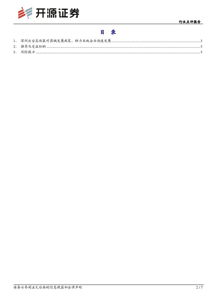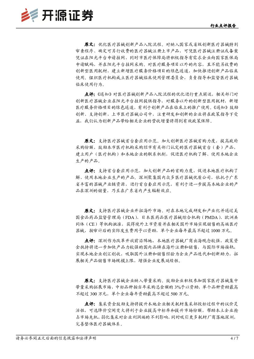 开源证券:医疗器械行业点评报告:《深圳市促进高端医疗器械产业集群高质量发展的若干措施》出台,助力本地企业快速发展.pdf