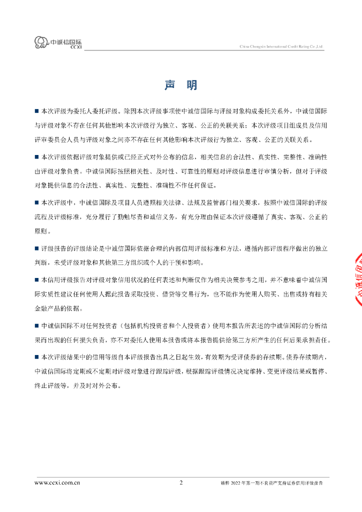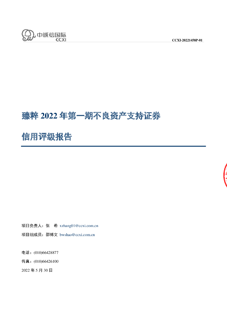 中诚信:臻粹2022年第一期不良资产支持证券售前评级报告及跟踪评级安排(中诚信国际).pdf