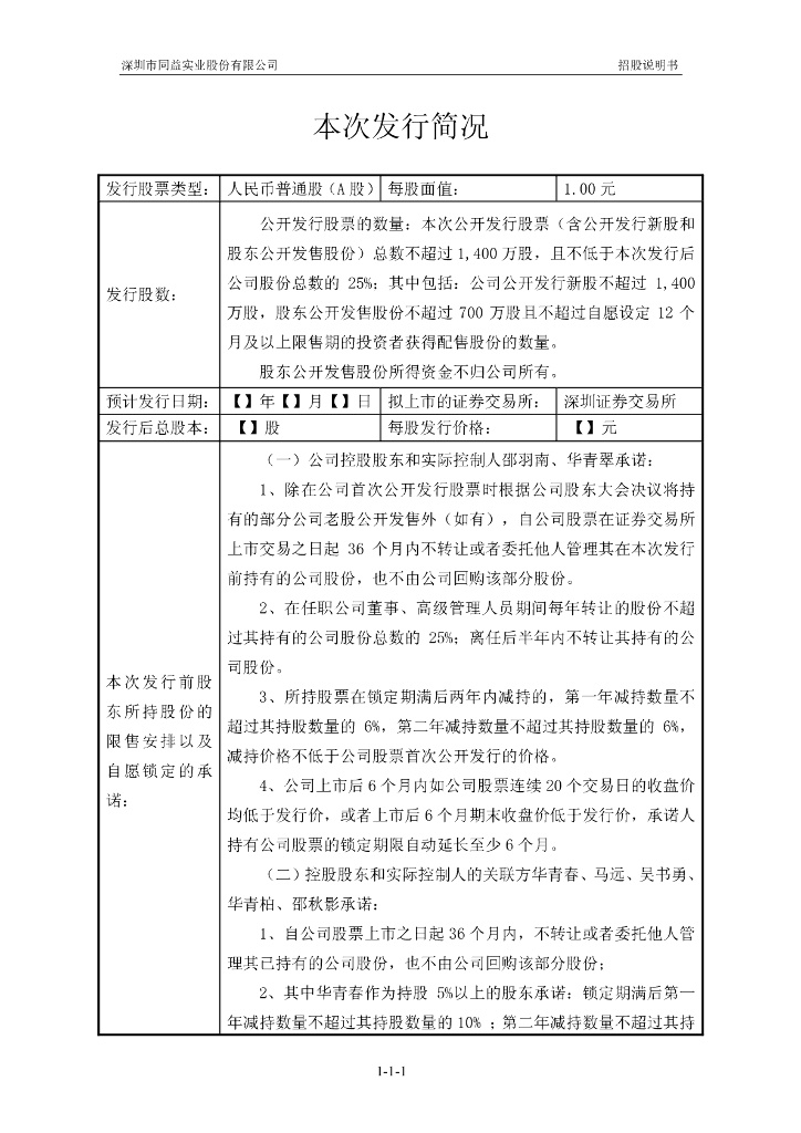 深圳市同益实业股份有限公司深交所创业板IPO上市招股说明书.pdf