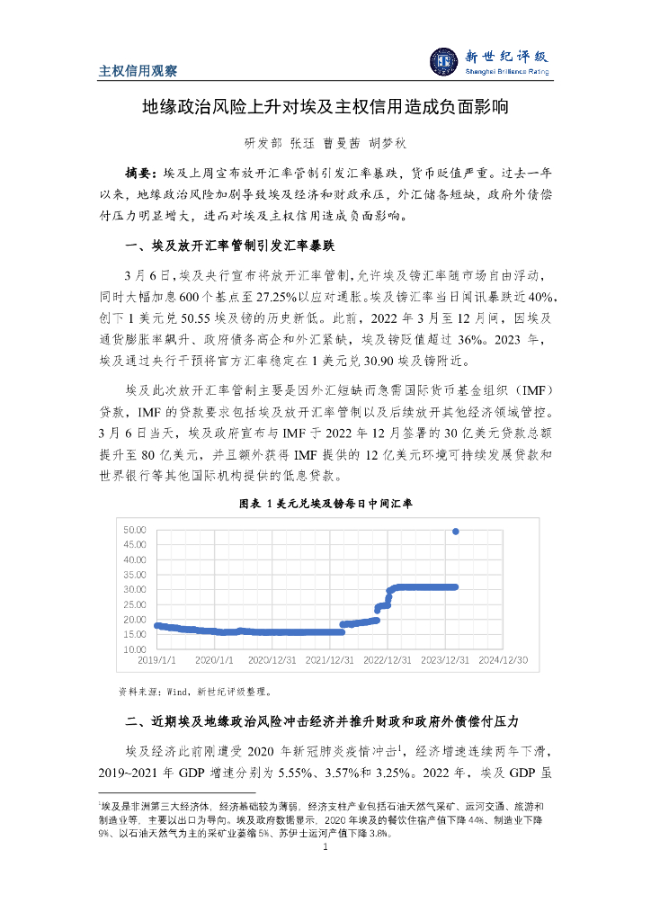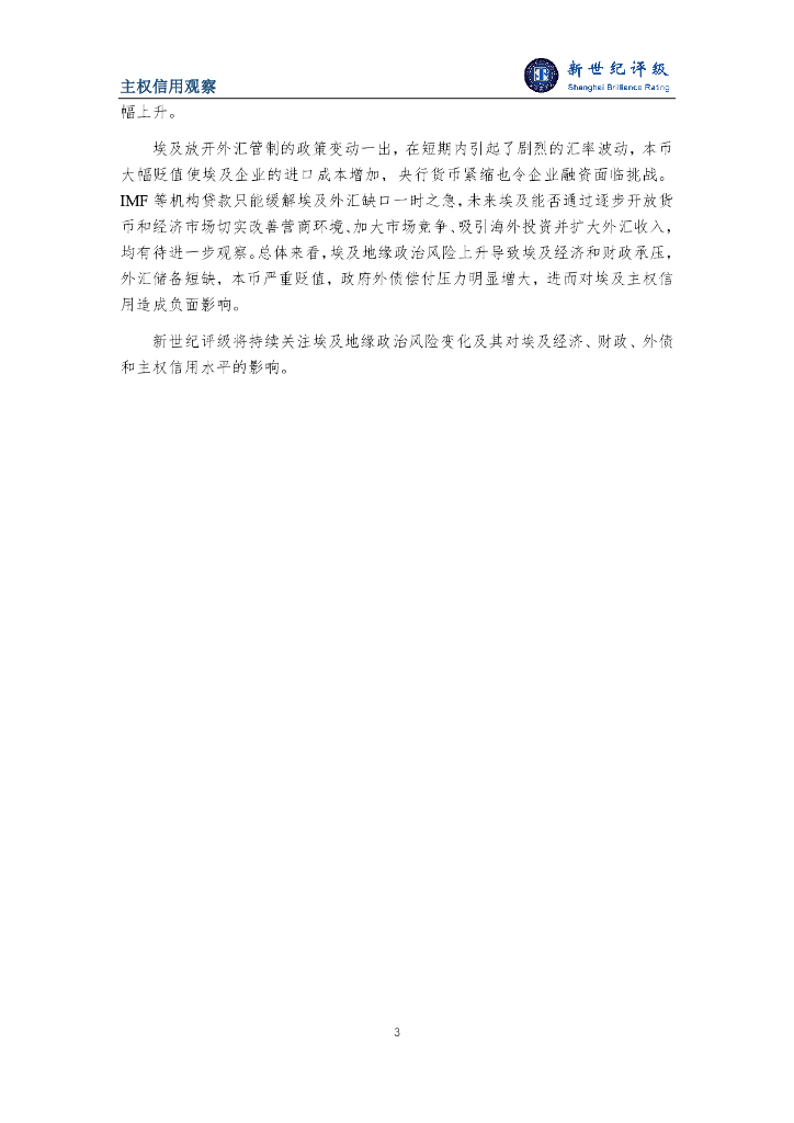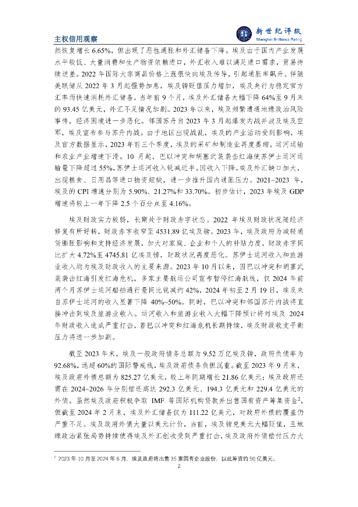 新世纪评级:地缘政治风险上升对埃及主权信用造成负面影响报告.pdf