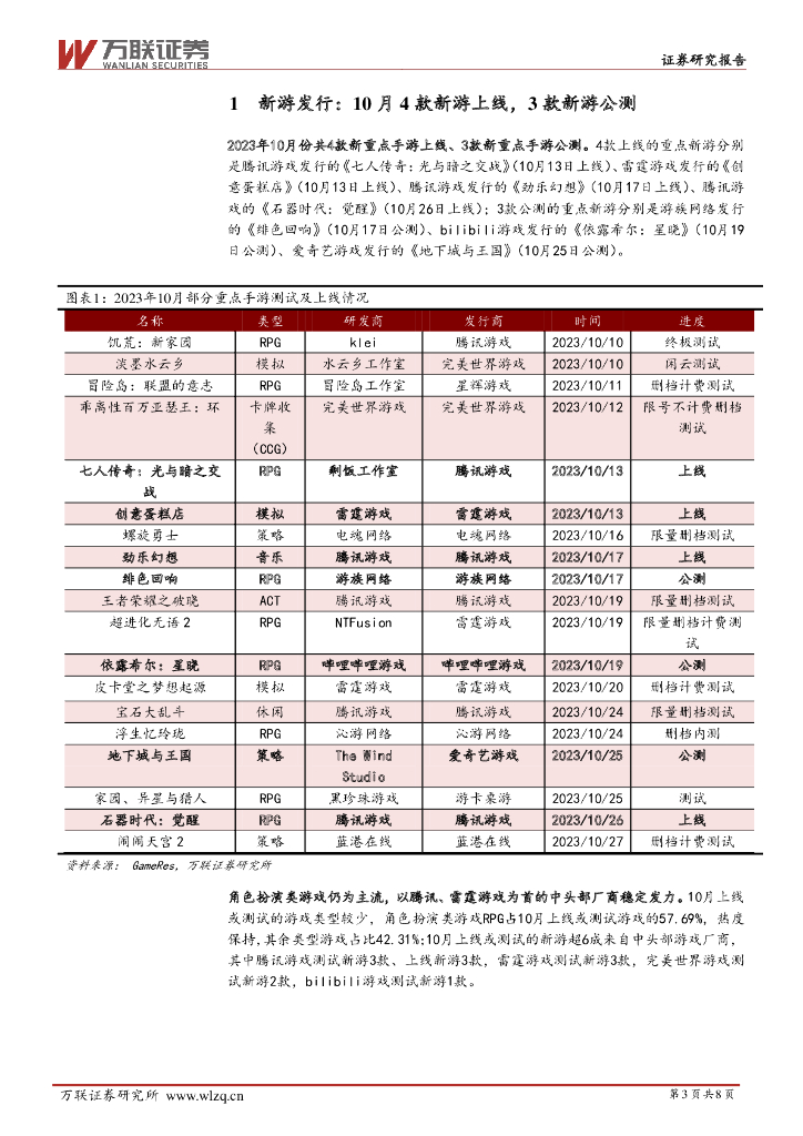 万联证券:传媒行业月报:10月中头部厂商持续发力,RPG赛道新游表现突出.pdf