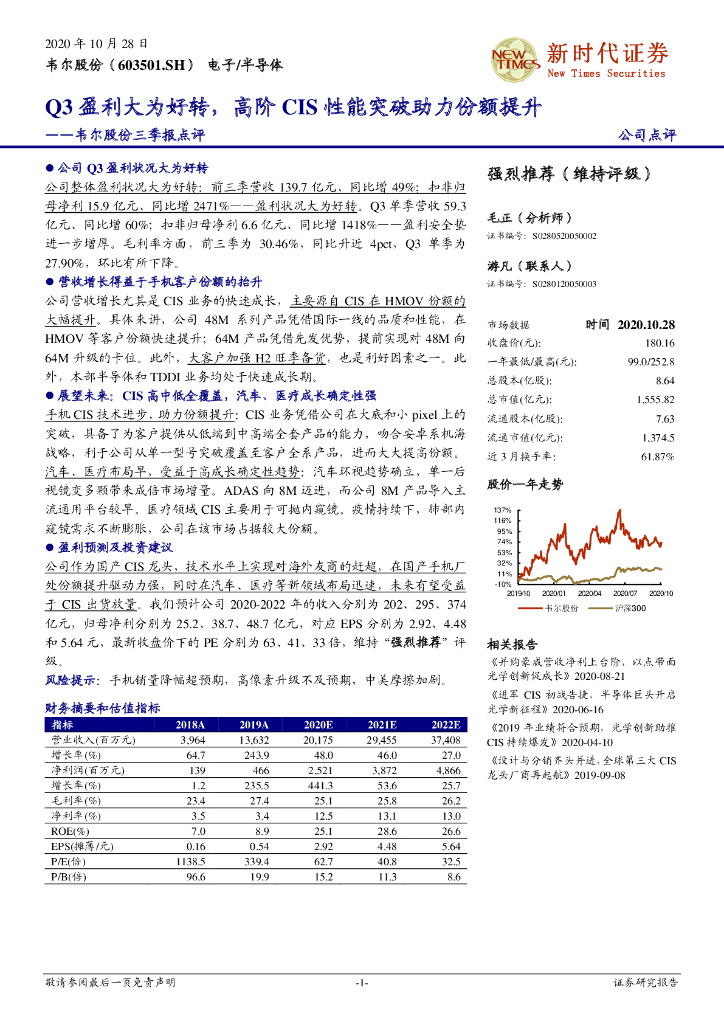 新时代证券:韦尔股份三季报点评:Q3盈利大为好转,高阶CIS性能突破助力份额提升.pdf