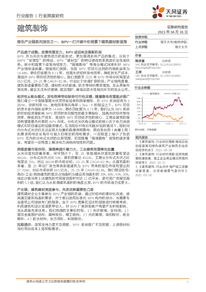 天风证券:建筑装饰行业深度研究:绿色产业链系列报告之一:BIPV—打开碳中和背景下建筑建材新蓝海.pdf
