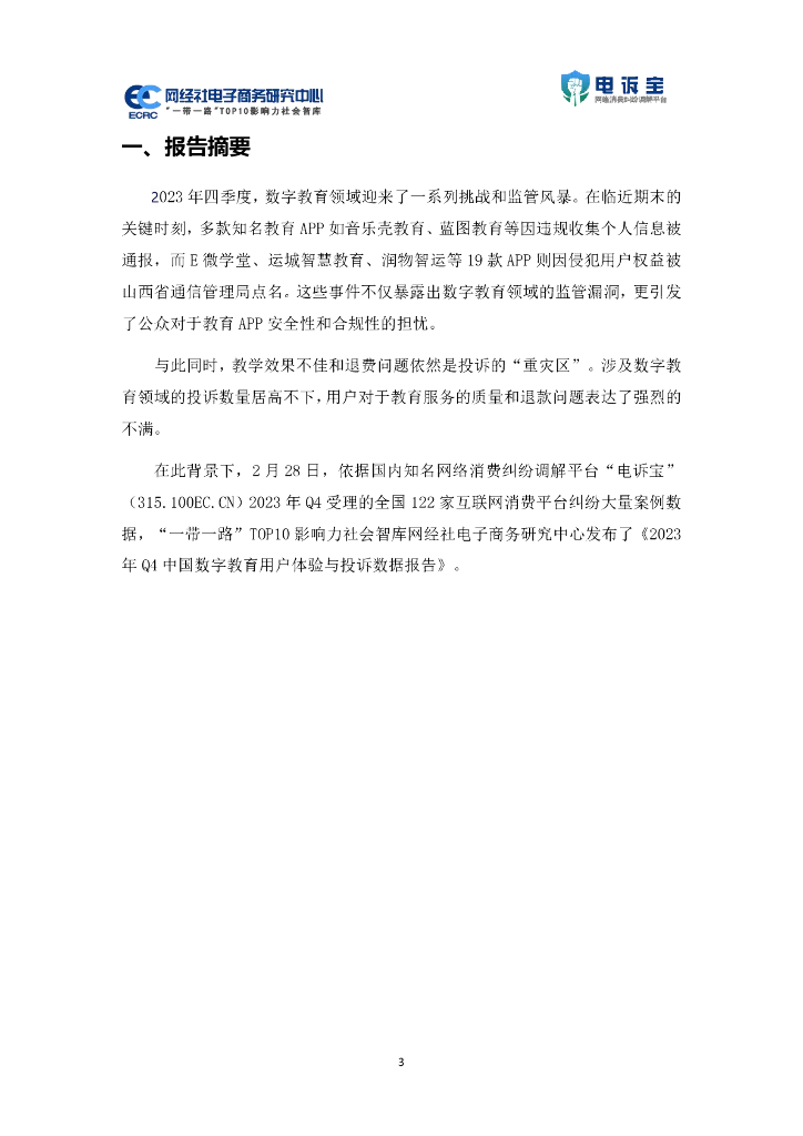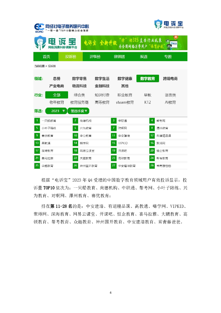 网经社电子商务研究中心:2023年Q4中国数字教育用户体验与投诉数据报告.pdf