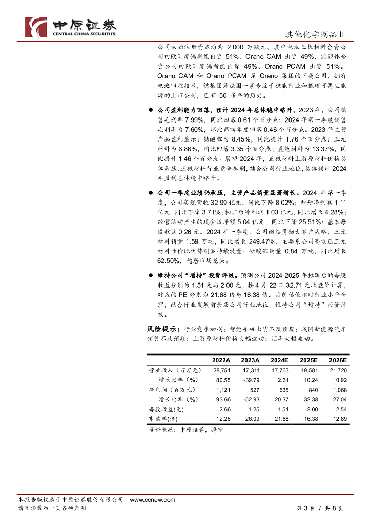 中原证券:厦钨新能(688778)-年报点评:业绩短期承压,一季度出货增长.pdf