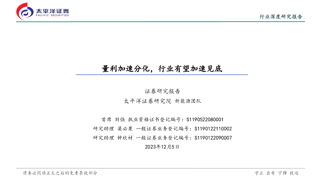 太平洋证券:新能源行业深度:量利持续分化,行业有望加速见底.pdf